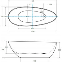 - rozmer väčšej vane: 142 × 62 cm, objem 140 l