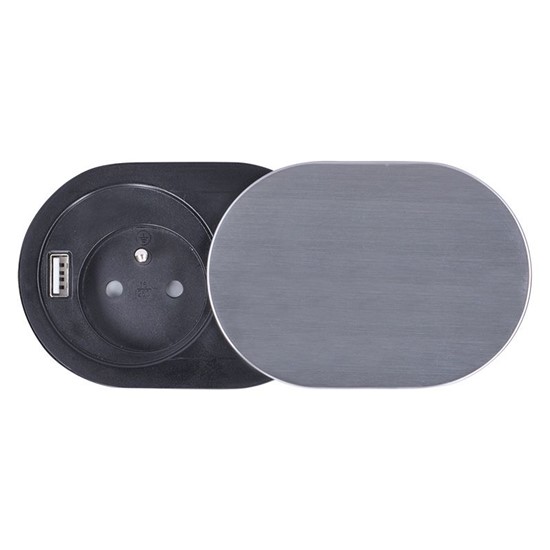 Vstavaná zásuvka do dosky s posuvnou krytkou - 1 zásuvka + USB - strieborná