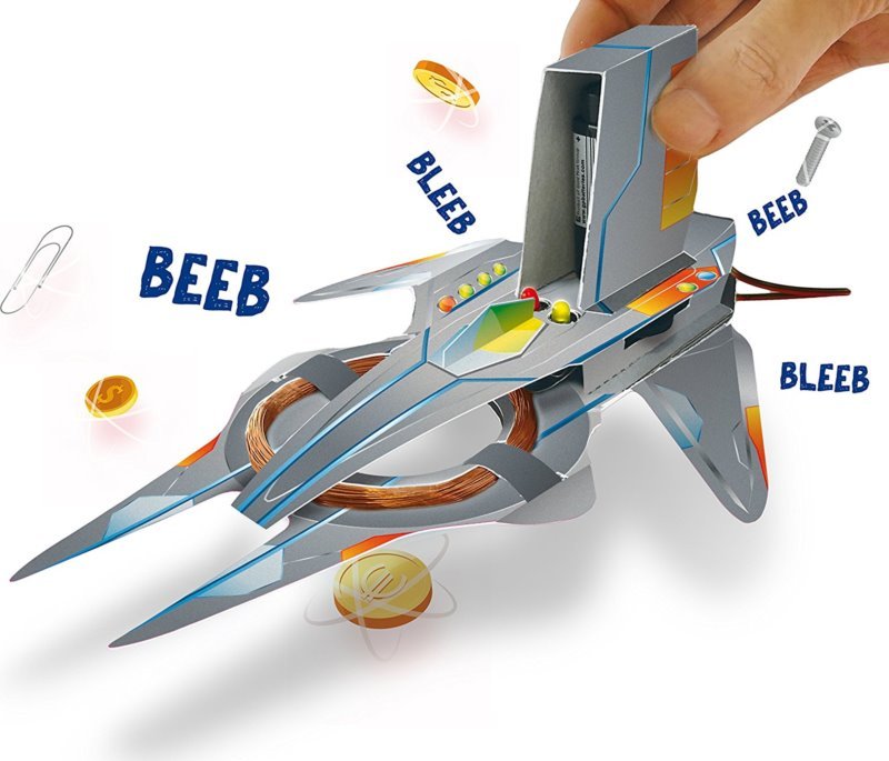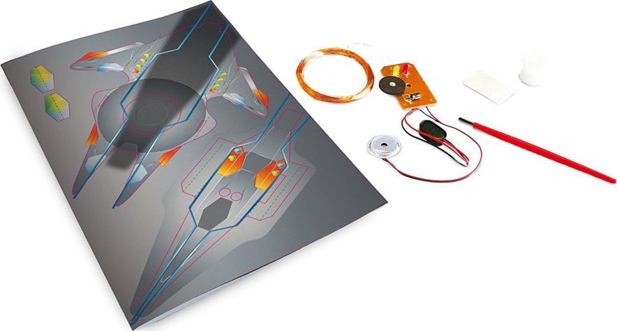 Vydaj sa na lov kovov! Pomocou tejto sady si môžete vytvoriť svoj vlastný detektor kovov v tvare kozmickej lode. K povozu detektora je potrebná batéria 9V (nie je súčasťou balenia). Balenie obsahuje penovú pásku, lepidlo, návod a ďalšie komponenty potrebné na výrobu detektora. Vhodné pre deti od 8 rokov.Vlastnosti
