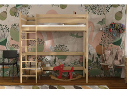 Vyvýšená posteľ pre deti je zaujímavá a moderná alternatíva ku klasickým detským posteliam. Vyvýšené detské postele svojou konštrukciou ponúkajú kombináciu pohodlného a bezpečného spánku na vyvýšenej posteli a priestoru na hranie, napr. v domčeku s látkovou stenou. Vy tak kúpou postele získate kvalitný kus nábytku a zároveň jedinečné miesto na hranie pre vaše dieťa. Všetky typy vyvýšených postelí spĺňajú štandardy bezpečnosti vašej ratolesti a skvele sa hodia do každej modernej domácnosti. Vybrať si u nás môžete vyvýšené postele s domčekom alebo napríklad vyvýšenú posteľ so šmýkačkou. V ponuke máme aj krásne vyvýšené postele z masívu. Aby bolo zaistené bezpečie vášho dieťaťa, súčasťou postele je aj zábrana, vďaka ktorej nespadne vášmu dieťaťu prikrývka na zem. Postele sú vyrobené z kvalitného borovicového dreva (konkrétne vlastnosti použitého materiálu sú uvedené pri jednotlivých produktoch). Drevo postieľok je natreté ekologickým lakom, popr. môžete mať posteľ v prírodnej úprave bez náteru (pozri konkrétné produkty). Časti postele sú zaoblené, tým pádom minimalizujú prípadné poranenia dieťaťa. Silný rošt pod matracom unesie váhu až 150 kg. Materiál aj celá konštrukcia našich postelí spĺňajú všetky bezpečnostné normy. Rebrík je možné montovať z pravej aj ľavej strany.