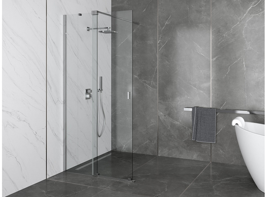 Walk-in sprchová zástena VAYO s pevným a posuvným sklom , ktorá je zaistená rozperným ramenom s maximálnou dĺžkou 120 cm . V spojení s modernými odtokovými žľabmi vznikne úplne bezbariérový priestor na sprchovanie. Zástena je vyrobená z bezpečnostného skla.