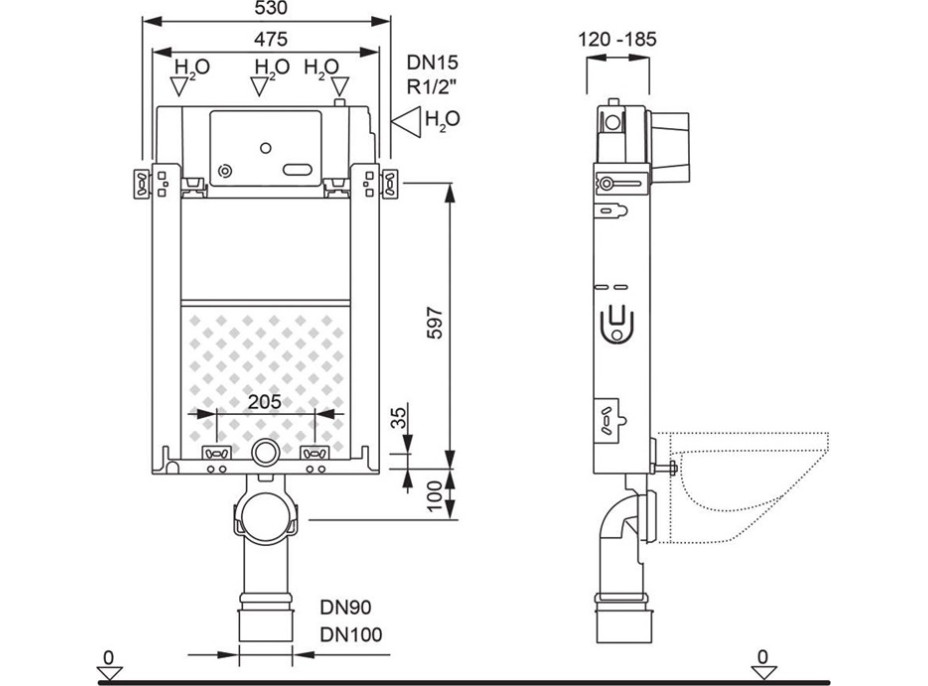 • Zamurovací prvok s podomietkovou nádržkou pre závesné WC misy