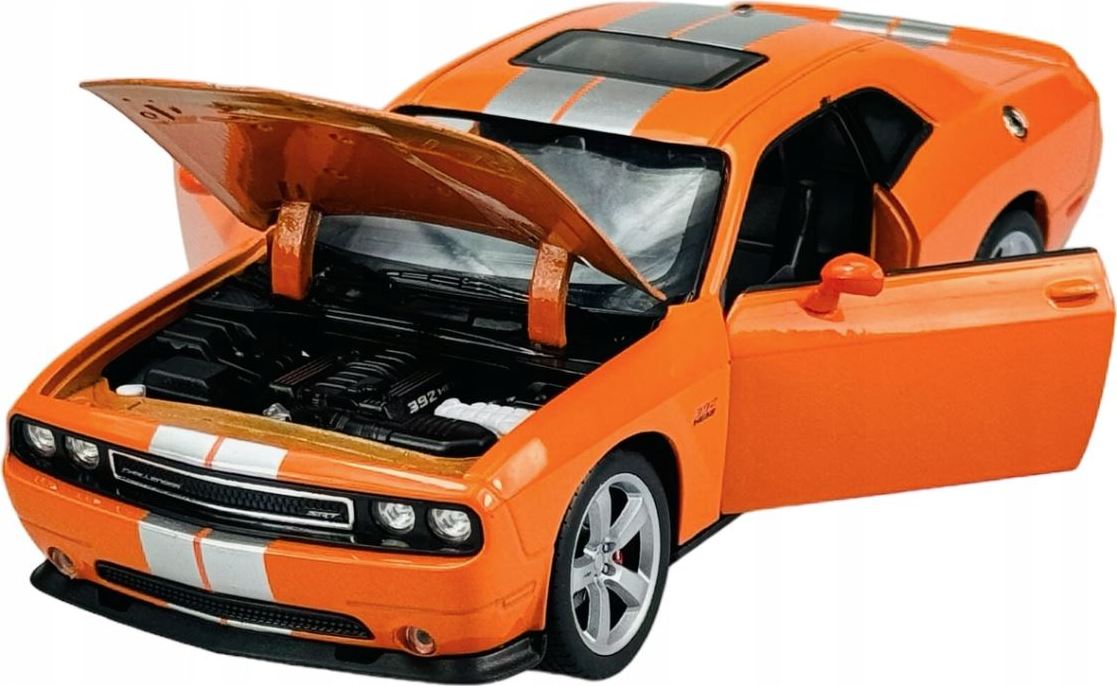 Detailný model Dodge Challenger z kovu a plastu má otvárateľné dvere aj kapotu. Vernosť týchto modelov zvyšuje použitie lakov, ktoré majú zhodný farebný odtieň ako skutočné autá. Konkrétnu farbu si môžete zvoliť z ponúkaných možností. Obrázok produktu nemusí vždy zachytávať farebné prevedenie príslušného popisu. Mierka 1:24 je zhotovením na hrane medzi zberateľským modelom a hračkou, autíčka vyžadujú opatrnejšie zaobchádzanie. Dodávané v rôznofarebnej papierovej krabičke s plastovým priehľadom.