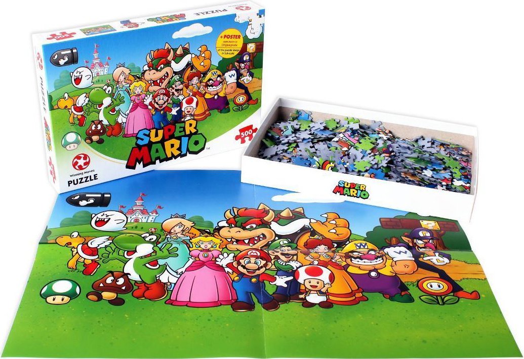 Puzzle s motívom kultovej hry Super Mario! Balenie obsahuje plagát, ktorý slúži ako predloha na skladanie. Rozmer zloženého puzzle cca 48 x 34 cmVlastnosti