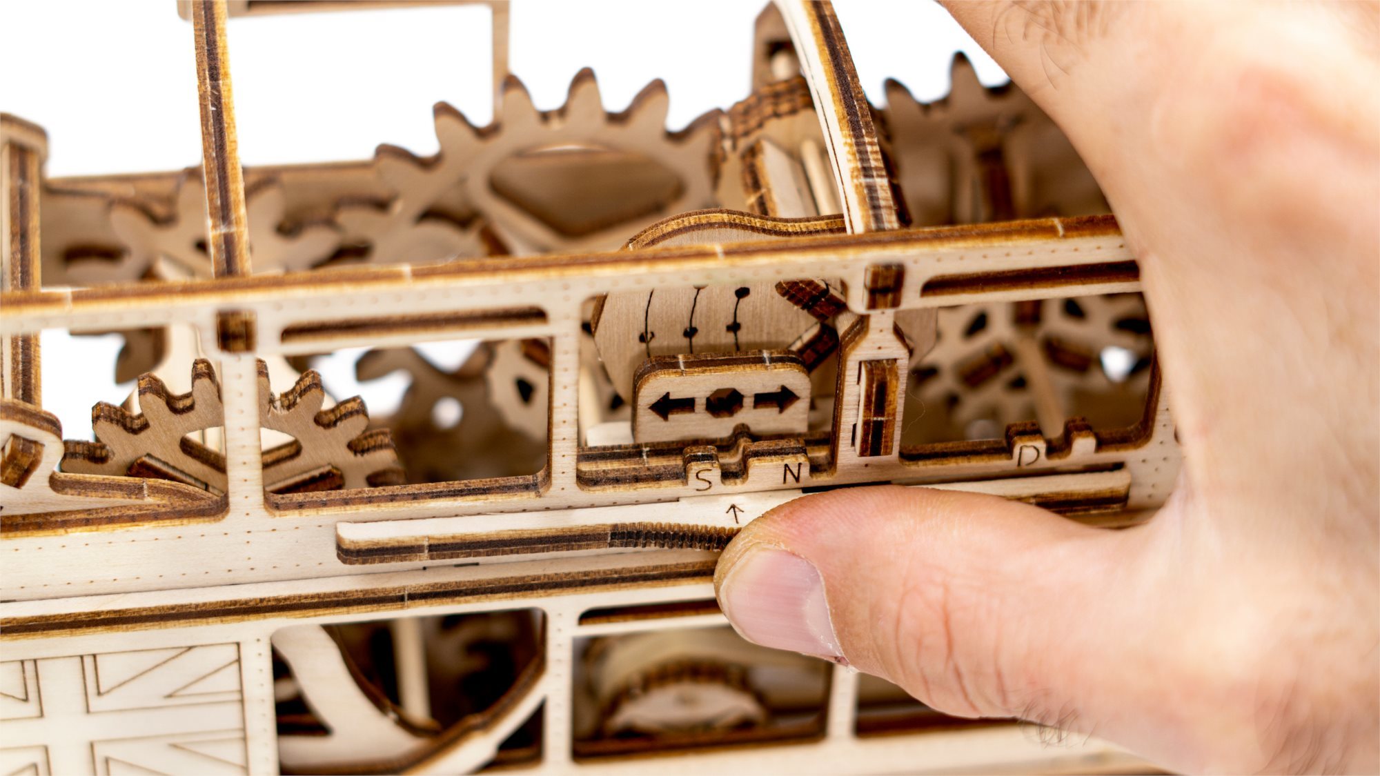 Predlohou tohto náročného 3D puzzle je legendárny londýnsky dvojposchodový autobus AEC Routemaster. Tento červený autobus sa stal symbolom londýnskej City a jeho vizitkou vo všetkých sprievodcoch po meste vydávaných po celom svete. - naťahuje sa špeciálnym kľúčom - poháňaný gumovými pásmi tzv. rezinomotorom - otvorený otočný prevodový mechanizmus - cestujúci na zadnej plošine 3D puzzle WOODEN CITY London Bus je neobvyklým darčekom pre vašich blízkych a milovníkov cestovania a báječných autobusov. Orientačná doba na zloženie: 6 hodín Drevené 3D puzzle WOODEN CITY sú detailne prepracované funkčné mechanické modely, ktoré sa skladajú bez lepidla alebo náradia. Sú vyrobené z ekologických drevených materiálov - kvalitné brezové preglejky. S mechanickými drevenými puzzle WOODEN CITY zažijete hodiny zábavy pri skladaní a spoznáte prevody, gumičkové motory, ozubené kolieska a ďalšie súčiastky z bezprostrednej blízkosti. funkčný mechanický model skladania bez použitia lepidla alebo náradia kvalitné spracovanie z prírodného materiálu prepracované detaily obrázkový návod UPOZORNENIE: Na zostavenie treba ulamovací nôž, nožnice, brúsny papier a sviečku z vosku (nie je súčasťou výrobku). Pre správne fungovanie a bezproblémovú prevádzku je potrebné nápravy a ozubené kolieska navoskovať. Rozmer zloženého puzzle cca 23,2 x 7 x 11,5 cmVlastnosti