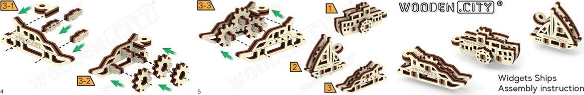 Prajete sa vydať na dlhú plavbu? Každý cestovateľ by mal mať so sebou pre šťastie malý, nenápadný a napriek tomu netradičný talizman. Ak vám bude cestou dlhá chvíľa, môžete si ho rozložiť a zase zložiť. Drevená mechanická stavebnica sady Drobností - Widgets obsahuje 3 mini modely lodí, ktoré si môžete len tak vystaviť, nosiť ako prívesok alebo darovať pre radosť. Vďaka jedinečnému dizajnu a detailom modelov bude vaše skladanie plné zábavy. 3D puzzle WOODEN CITY Widgets Ships je drobnosťou, ktorá poteší každého milovníka lodí a cestovateľov. Orientačná doba na zloženie: 3 x 10 min Drevené 3D puzzle WOODEN CITY sú detailne prepracované funkčné mechanické modely, ktoré sa skladajú bez lepidla alebo náradia. Sú vyrobené z ekologických drevených materiálov - kvalitné brezové preglejky. S mechanickými drevenými puzzle WOODEN CITY zažijete hodiny zábavy pri skladaní a spoznáte prevody, gumičkové motory, ozubené kolieska a ďalšie súčiastky z bezprostrednej blízkosti. funkčný mechanický model skladania bez použitia lepidla alebo náradia kvalitné spracovanie z prírodného materiálu prepracované detaily obrázkový návod UPOZORNENIE: Na zostavenie je potrebný ulamovací nôž, nožnice, brúsny papier a sviečku z vosku (nie je súčasťou výrobku). Pre správne fungovanie a bezproblémovú prevádzku je potrebné navoskovať pohyblivé časti modelu.Vlastnosti