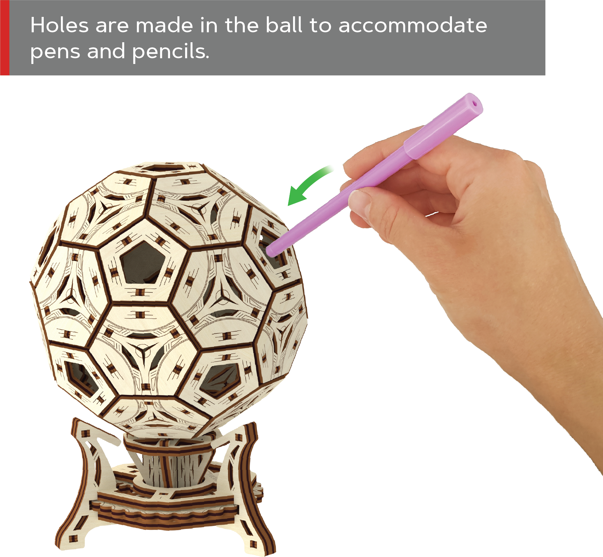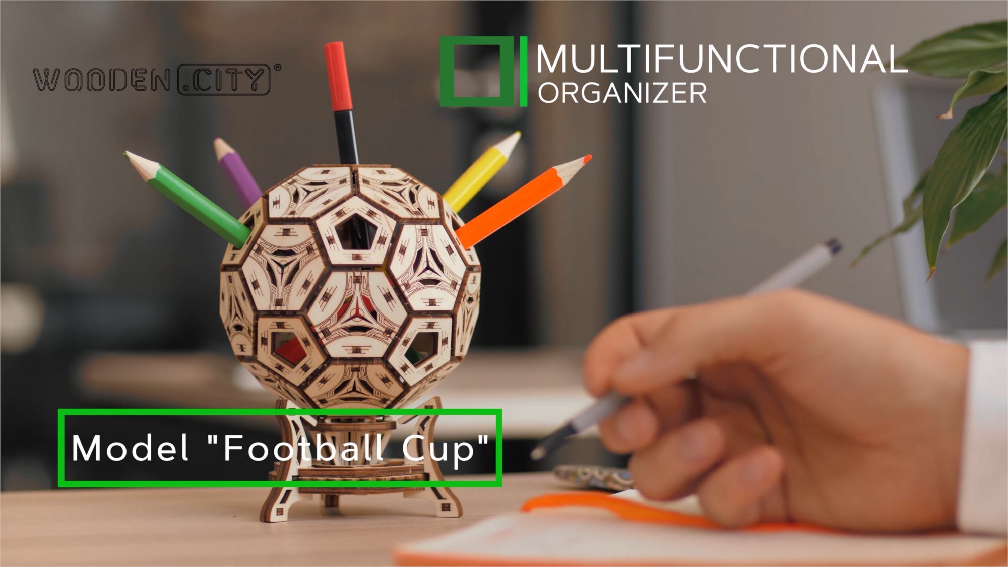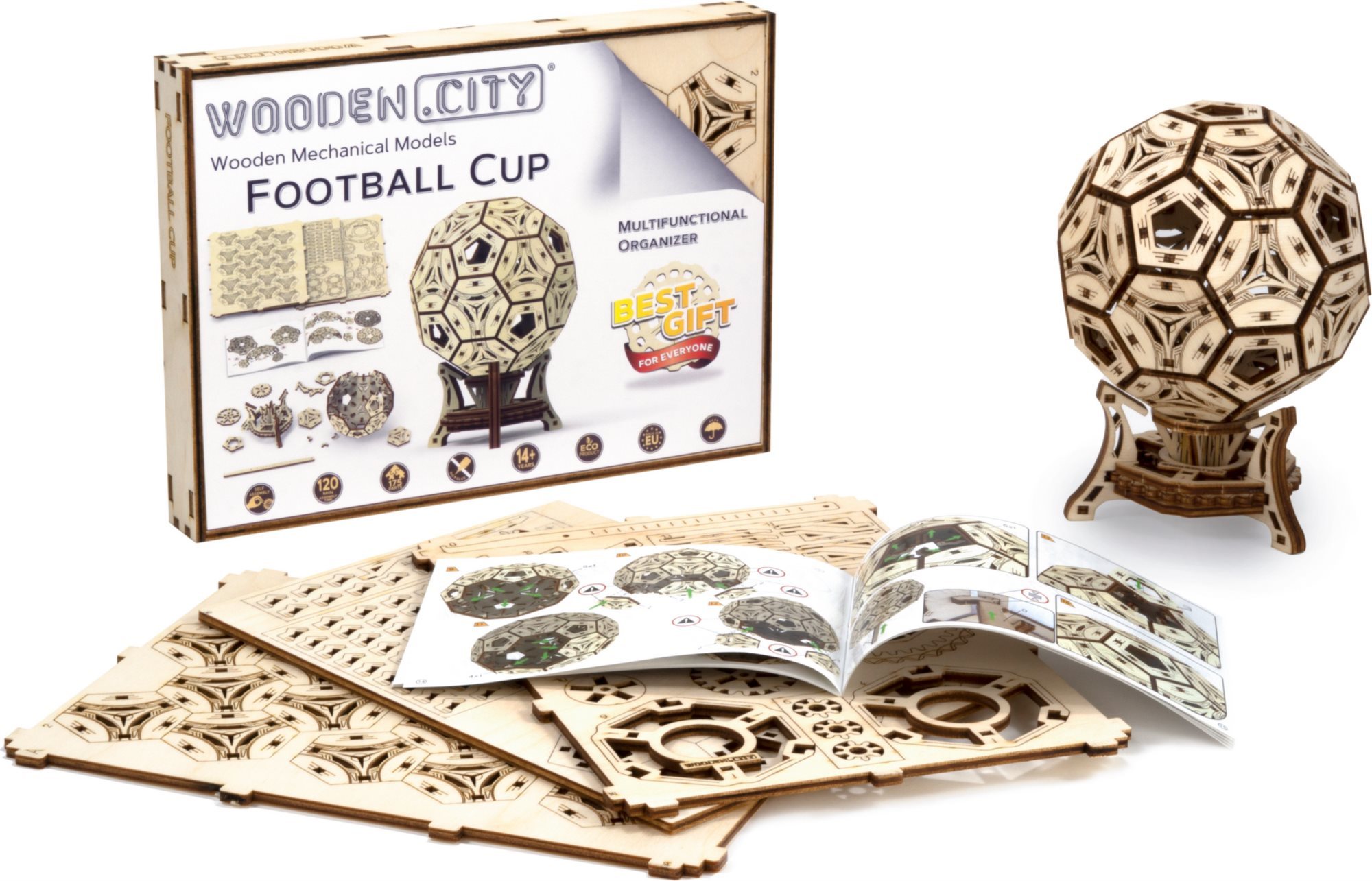 Prečo je byť futbalistom tak cool? Predovšetkým ste vždy v skvelej forme, šport je váš život, ste slávni, máte svalnaté nohy a veľa obdivovateliek. Znie to skvele? Tento multifunkčný 3D organizér je stvorený práve pre vás – úžasný futbalový pohár. - možno použiť na kancelárske veci - roztočte stojan a sledujte, ako sa lopta otáča - vyberte loptu zo stojana a hrajte sa len tak 3D puzzle WOODEN CITY Footbal Cup je skvelým darčekom pre všetkých futbalových nadšencov a fanúšikov. Obtiažnosť: 3 z 5 (podľa rozdelenia Wooden City) Orientačná doba na zloženie: 2 hodiny Drevené 3D puzzle WOODEN CITY sú detailne prepracované funkčné mechanické modely, ktoré sa skladajú bez lepidla alebo náradia. Sú vyrobené z ekologických drevených materiálov - kvalitné brezové preglejky. S mechanickými drevenými puzzle WOODEN CITY zažijete hodiny zábavy pri skladaní a spoznáte prevody, gumičkové motory, ozubené kolieska a ďalšie súčiastky z bezprostrednej blízkosti. funkčný mechanický model skladania bez použitia lepidla alebo náradia kvalitné spracovanie z prírodného materiálu prepracované detaily obrázkový návod UPOZORNENIE: Na zostavenie treba ulamovací nôž, nožnice, brúsny papier a sviečku z vosku (nie je súčasťou výrobku). Pre správne fungovanie a bezproblémovú prevádzku je potrebné nápravy a ozubené kolieska navoskovať. Rozmer zloženého puzzle cca 15,4 x 11,4 x 11,4 cmVlastnosti