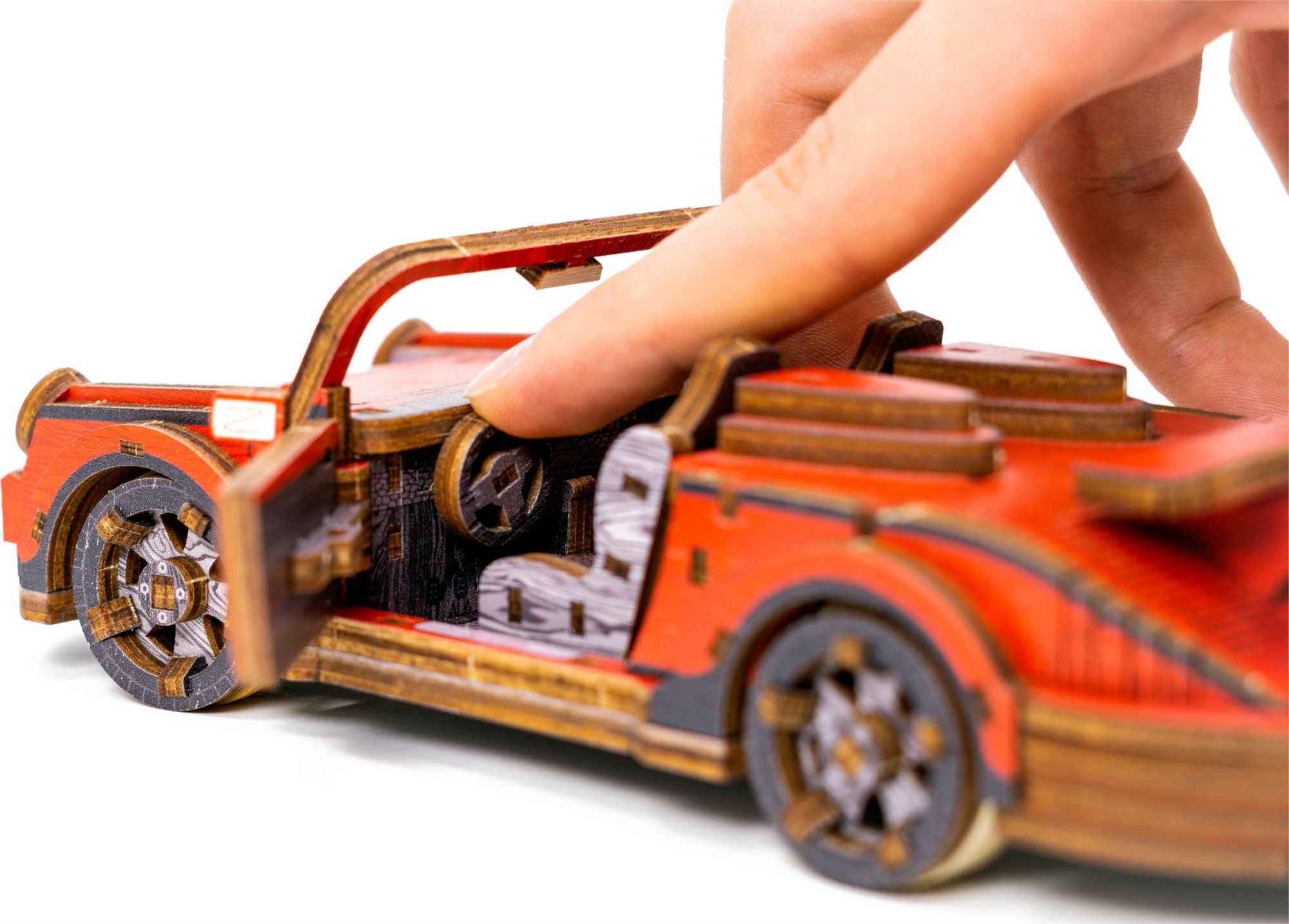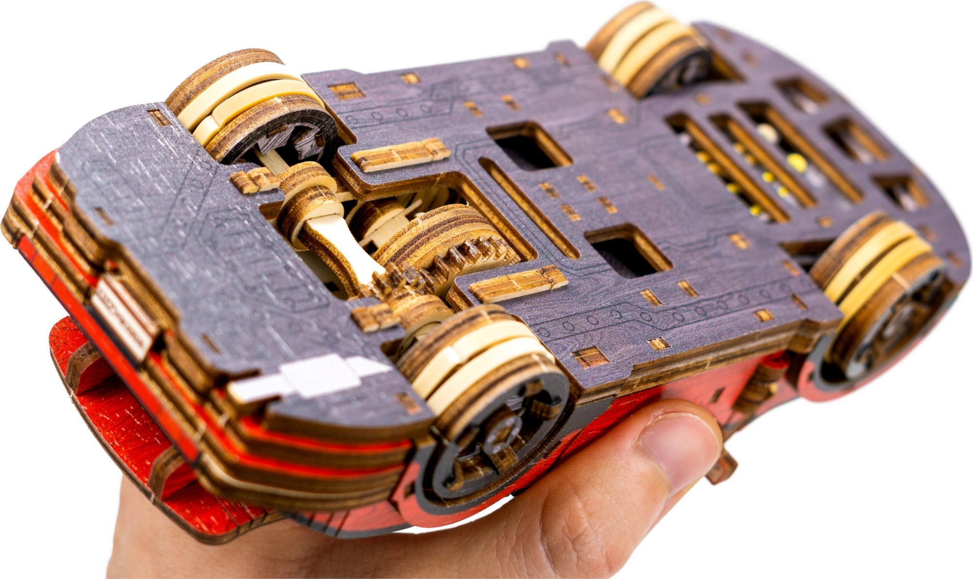 Drevená mechanická stavebnica najúžasnejšieho športového auta na vás čaká! Vďaka jedinečnému dizajnu a prekvapivým detailom tohto modelu bude vaše trávenie času plné zábavy a skvelých emócií. Môžete používať riadenie predných kolies. Auto so zotrvačným mechanizmom môže prejsť až 1 meter. Vlastnosti športového auta: - motor poháňaný gumičkovým remeňom, - otočné predné kolesá, - výrazné farebné prvky vďaka vysoko presnej UV tlači, - drevená krabička slúži ako podstavec, - zberateľská edícia. 3D puzzle WOODEN CITY Sport Car bude najlepším darčekom pre každého milovníka športových vozidiel. Obtiažnosť: 3 z 5 (podľa rozdelenia Wooden City) Orientačná doba na zloženie: 3 hodiny Mierka: 1:22 Drevené 3D puzzle WOODEN CITY sú detailne prepracované funkčné mechanické modely, ktoré sa skladajú bez lepidla alebo náradia. Sú vyrobené z ekologických drevených materiálov - kvalitné brezové preglejky. S mechanickými drevenými puzzle WOODEN CITY zažijete hodiny zábavy pri skladaní a spoznáte prevody, gumičkové motory, ozubené kolieska a ďalšie súčiastky z bezprostrednej blízkosti. funkčný mechanický model skladania bez použitia lepidla alebo náradia kvalitné spracovanie z prírodného materiálu prepracované detaily UPOZORNENIE: Na zostavenie treba ulamovací nôž, nožnice, brúsny papier a sviečku z vosku (nie je súčasťou výrobku). Pre správne fungovanie a bezproblémovú prevádzku je potrebné nápravy a ozubené kolieska navoskovať. Rozmer zloženého puzzle cca 19,7 x 8,9 x 5,8 cmVlastnosti