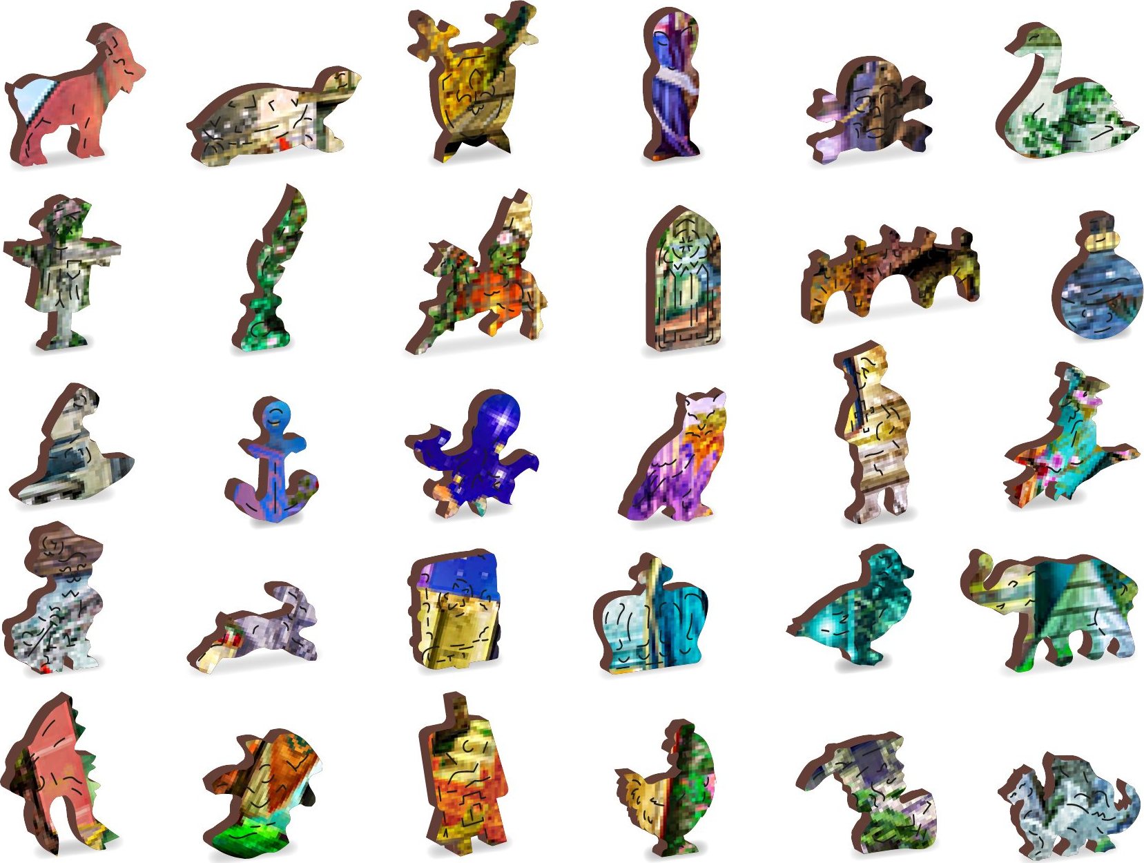 Laserom vyrezávané drevené puzzle WOODEN CITY so svojimi špeciálne tvarovanými dielikmi je neskutočne zábavné. Časť dielikov je vyrobená v tvare zvierat, stavieb alebo predmetov, ktorých výsledný efekt umocňujú laserom zvýraznené detaily. Tieto dieliky môžu samostatne stáť ako drobné figúrky. Skladanie puzzle s rôznorodými dielikmi je ťažšie a predstavuje väčšiu výzvu, než skladanie klasického puzzle. Puzzle je navyše obojstranné, skladať môžete ako podľa obrázku (lícová strana), tak podľa tvaru (rubová strana so vzorom). Značka WOODEN CITY okrem unikátneho konceptu puzzle nezabúda na ekológiu, u týchto výrobkov preto nenájdete žiadne plastové obaly. s unikátne tvarovanými dielikmi predstavujúce známe stavby, predmety alebo zvieratá podľa témy motívu vyššia obtiažnosť pri menšom počte dielikov - skladanie puzzle s rôznotvarými dielikmi je náročnejšie obojstranné puzzle 2v1 - z jednej strany je obrázok, z druhej opakujúci sa vzor na skladanie podľa tvaru hladkej hrany bez triesok vďaka precíznemu laserovému spracovaniu vyrobené z pevnej drevovláknitej HDF dosky o sile 3-4mm vo vnútri balenia je samostatná predloha na skladanie EKO Friendly 100% bez plastových obalov - puzzle je v papierovom sáčku vo vnútri papierovej krabičky vhodný darček pre akúkoľvek príležitosť Veľkosť: XXL Počet dielikov celkom : 2000 Unikátne tvarované dieliky: 120 Rozmer zloženého puzzle cca 80,1 x 53,2 cmVlastnosti