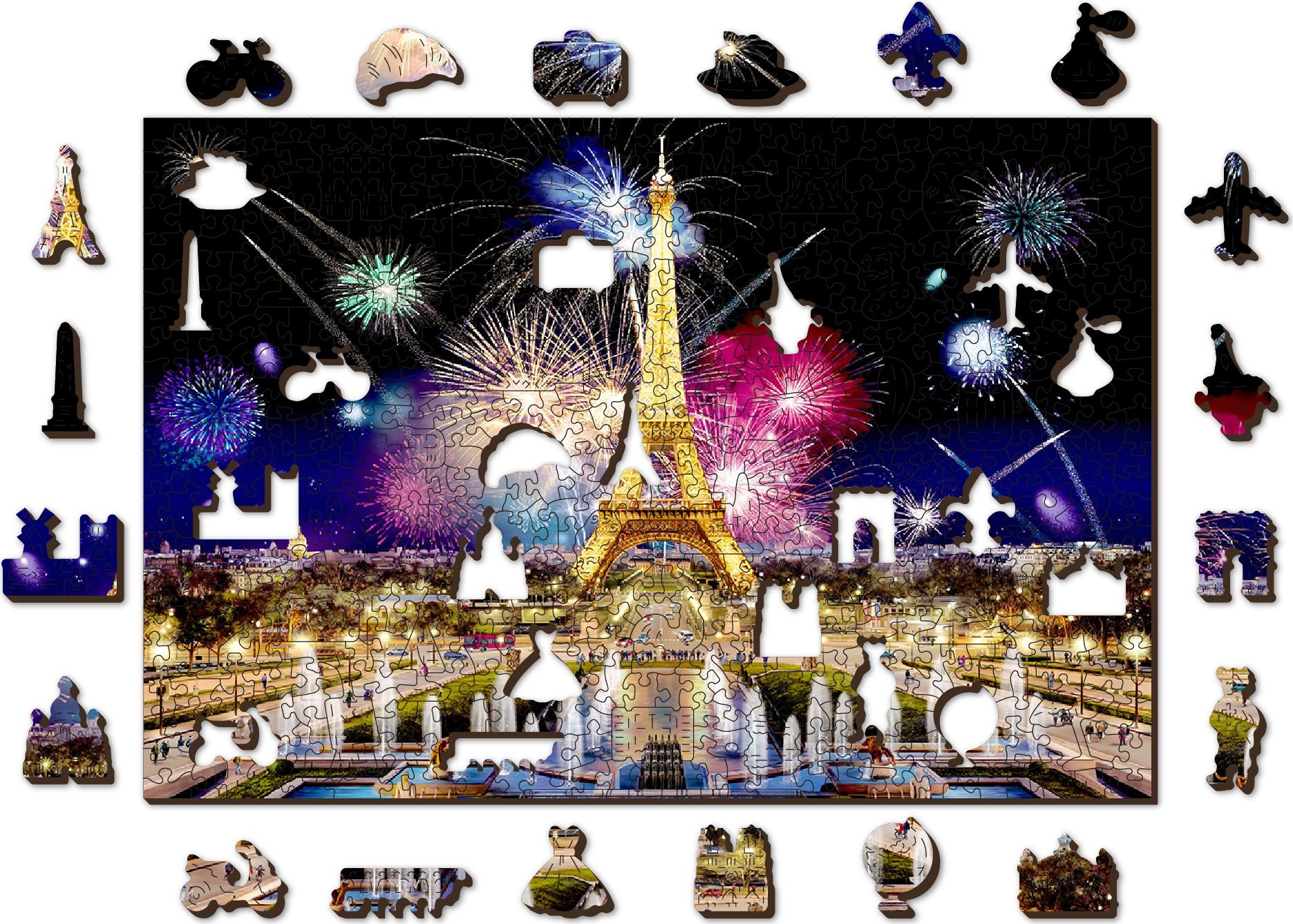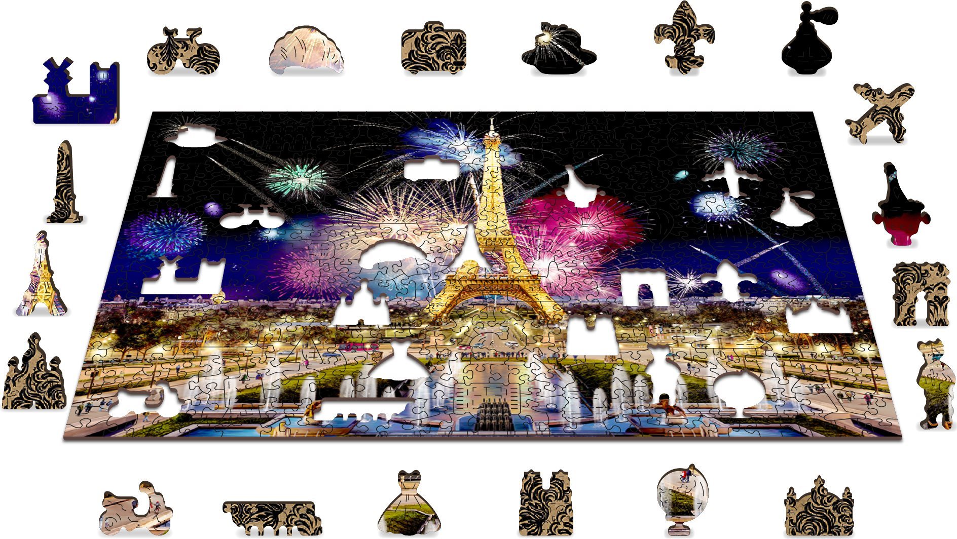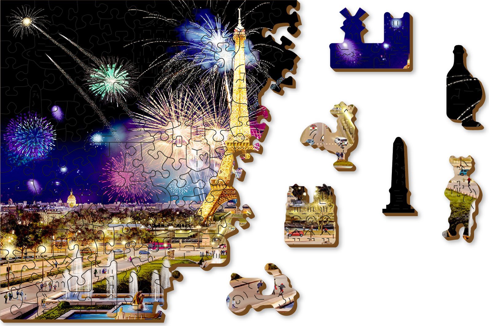 WOODEN CITY Drevené puzzle Nočný Paríž 2v1, 505 dielikov EKO