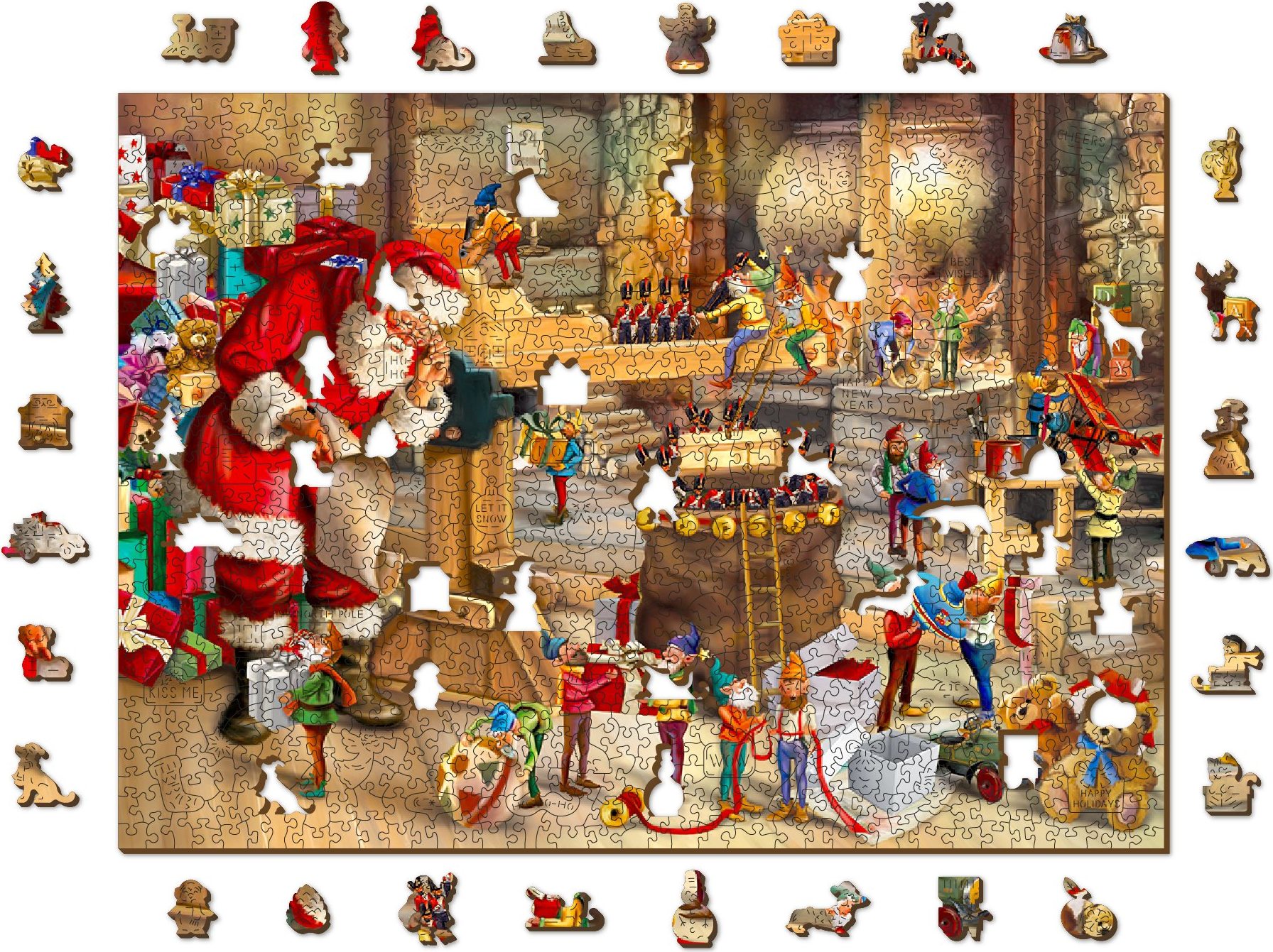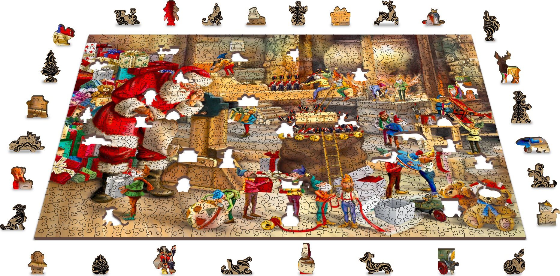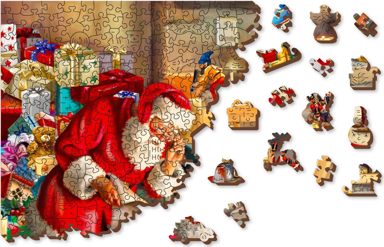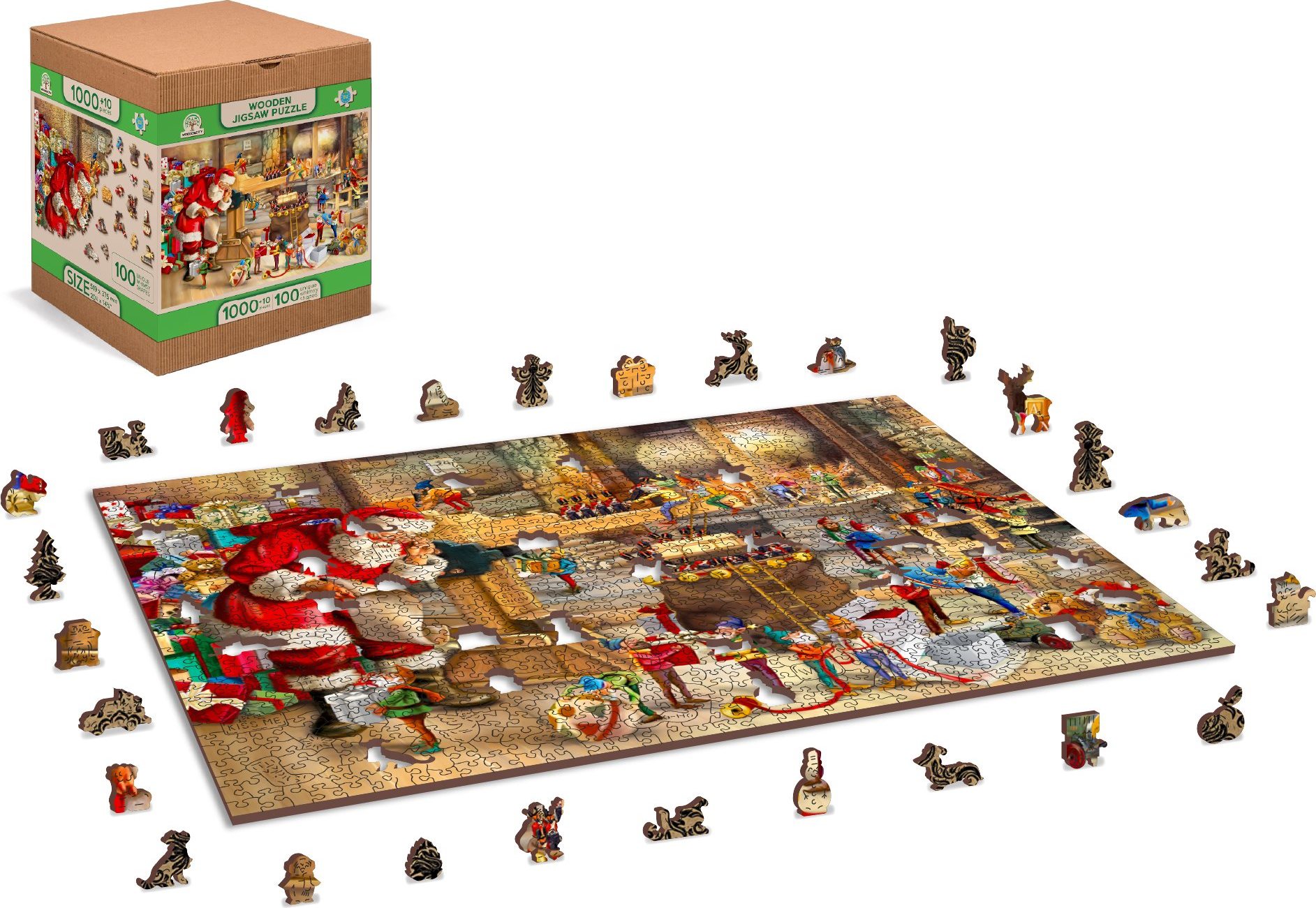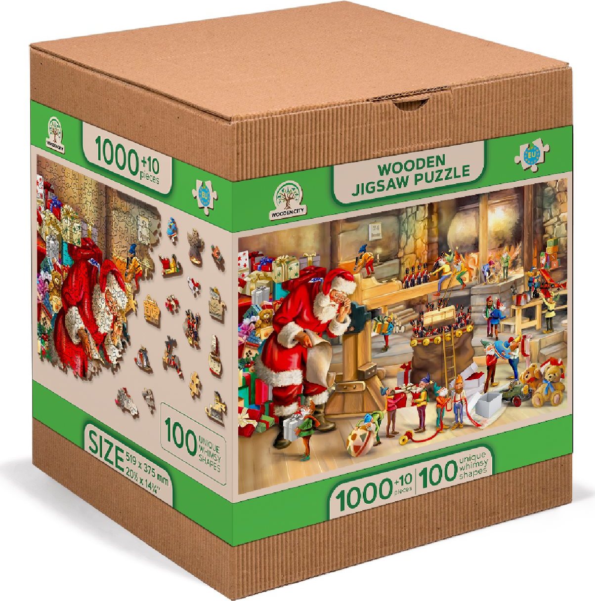 WOODEN CITY Drevené puzzle Santova dielňa 2v1, 1010 dielikov EKO