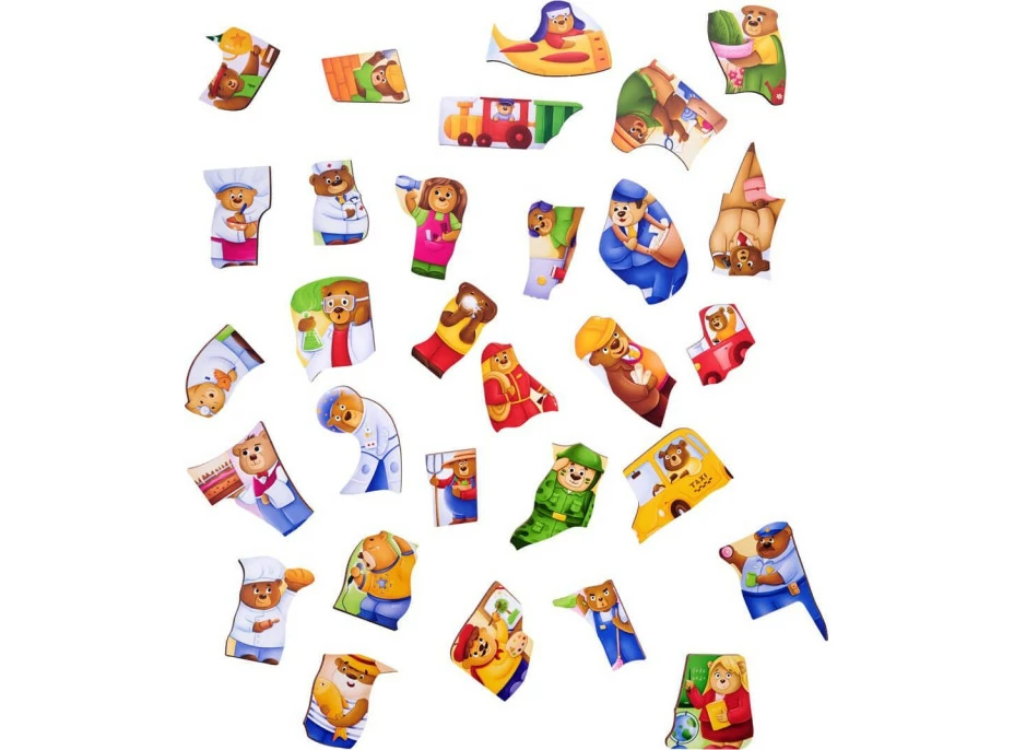 Zoznámte vaše deti so svetom povolania za pomoci roztomilých medveďov. Vaše deti sa tak zoznámia s mnohými povolaniami ako napríklad záchranár, lekár alebo muzikant. S týmito kreatívnymi a vzdelávacími puzzle zažijú vaše deti zábavu a ešte sa naučia veľa nového. Drevené puzzle sú dôležité pre vývoj každého dieťaťa, zvyšujú aktivitu jeho mozgu, zlepšujú kognitívne schopnosti a schopnosti.
