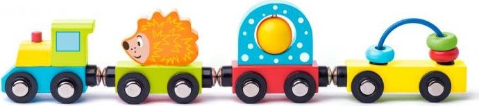 Vláčik je ideálnym doplnkom k vláčikodrahám. Farebná mašinka a 3 nákladné vagóny dovezú každý náklad do cieľa. Na každom vagóniku je iný náklad. Rozteč kolies: 2,5 cm Vhodné pre deti od 3 rokov.Vlastnosti