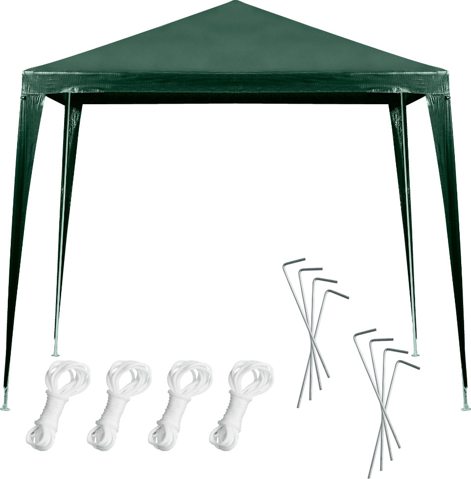 Tento zelený záhradný altánok s rozmermi 2,5 x 2,5 m je praktickým riešením, ktoré vám umožní efektívne využiť priestor vo vašej záhrade alebo na pozemku. Chráni pred slnkom a ľahkým dažďom a vytvára útulné miesto na relaxáciu vonku. Konštrukciu podopiera stabilný kovový rám so štyrmi nohami. Celková výška pavilónu je 2,55 m, čo poskytuje pohodlný využiteľný priestor. Kryt vyrobený z odolného PE materiálu s gramážou 90 g/m² zaručuje odolnosť voči poveternostným vplyvom. Súprava obsahuje montážne komponenty: kryt, rám, spojky a kotviace kolíky. Ideálne na grilovanie, vonkajšie akcie, pikniky na záhrade. Skvele sa hodí aj ako komerčný stan. Nohy boli opatrené držiakmi na pripevnenie k zemi.