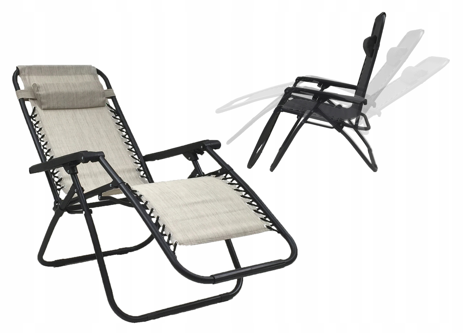 Záhradné rozkladacie lehátko FARO béžové - držiak nápojov - vankúšik