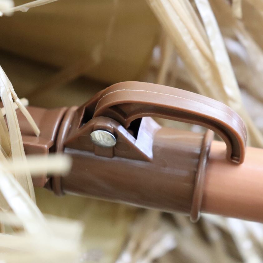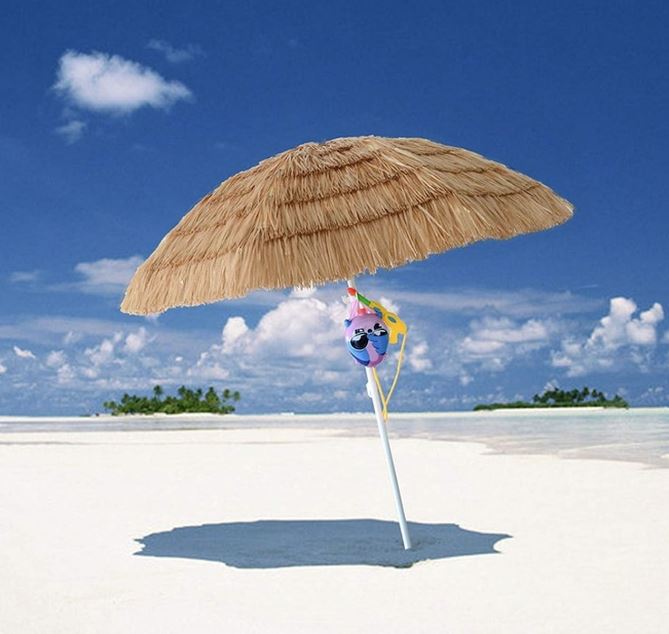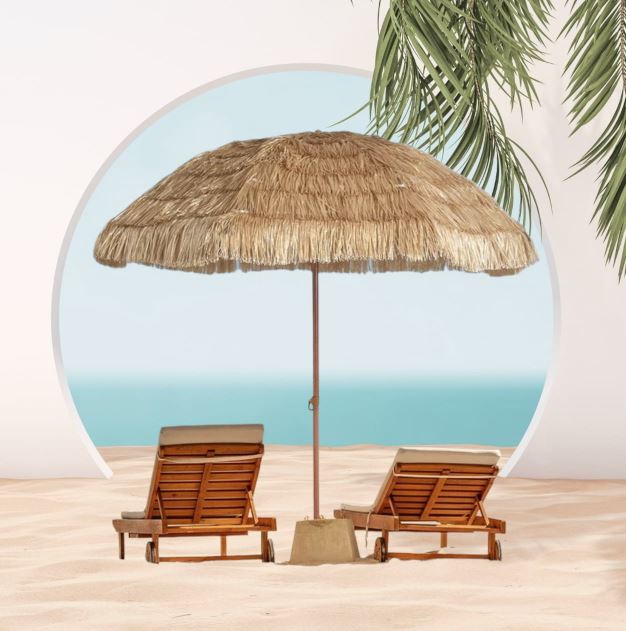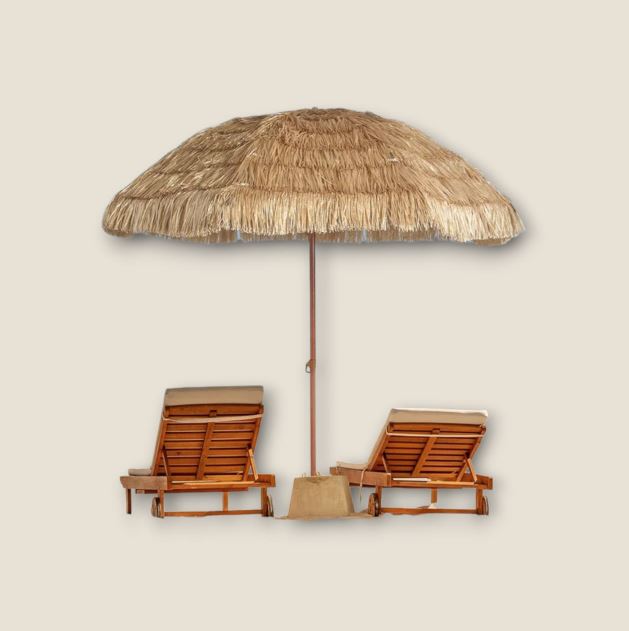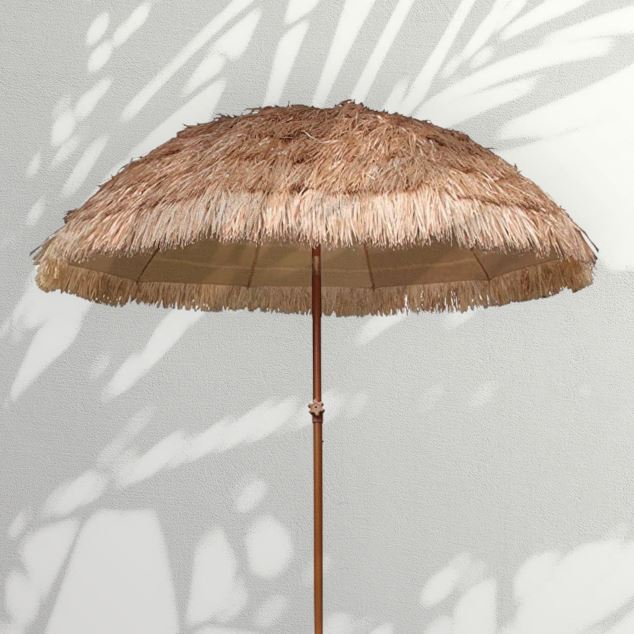 Vneste na svoju záhradu, terasu alebo na pláž trochu havajskej atmosféry so štýlovým slnečníkom. Vytvoríte si s ním tieň a ochránite sa pred škodlivým UV žiarením. Strieška slnečníka je vyrobená zo 6 vrstiev polypropylénu odolného proti poveternostným vplyvom a UV žiareniu v podobe tenkých prúžkov, ktoré zaisťujú atraktívny vzhľad. Vďaka polyesterovej podšívke je slnečník ideálny na vonkajšie použitie. Práškovo lakovaný oceľový stĺpik a rebrá v hnedej farbe dodávajú konštrukcii stabilitu a odolnosť. Slnečník nemá funkciu naklápania.