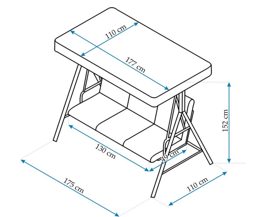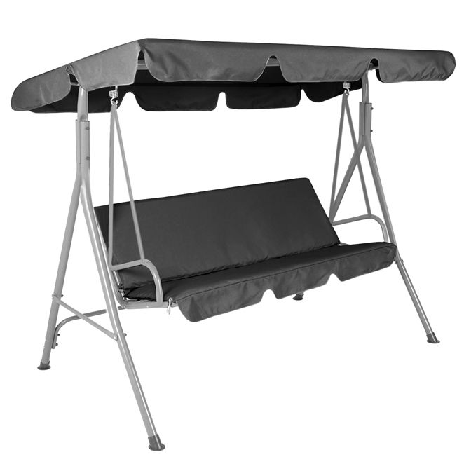 Zahradní třímístná houpačka HOLLYWOOD je ideální pro každou zahradu a terasu. Houpačka je vyrobena z robustních a trvanlivých kovových trubek lakovaných práškovou metodou. Pružiny na odpružení sezení poskytují dostatečný komfort. Nastavitelná poloha střechy houpačky umožňuje nastavení tak, aby optimálně chránila před sluncem. Samotná střecha je vyrobena z vysoce kvalitního polyesteru.