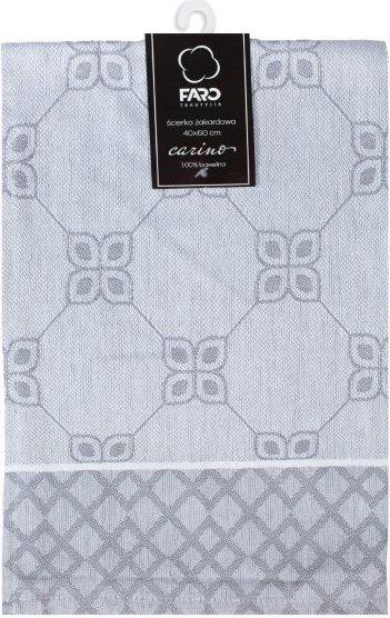 Kuchynská utierka Carino je nenahraditeľným produktom v kuchyni. Je vyrobená zo 100%, vďaka čomu dobre saje vodu. Táto utierka je ideálna na utieranie riadu, rúk a na leštenie skla. Utierka má certifikát OEKO-TEX, čo znamená, že je bezpečná pre pokožku a životné prostredie. Výrobok je vysoko kvalitný. Rozmer utierky je 40x60 cm. Táto veľkosť je optimálna pre pohodlné používanie. Bavlnená látka Carino je tkaná žakárovou metódou a má zaujímavý, módny vzor. Kuchynskú utierku Carino je možné prať v práčke pri teplote do 60 stupňov C.