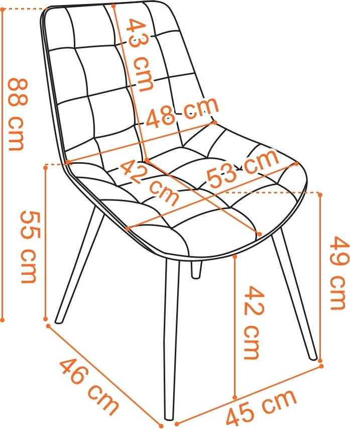 Moderná stolička, ktorá ozdobí vašu obývaciu izbu, jedáleň a dokonca aj kanceláriu. Velúrová poťahová látka pokrývajúca hornú časť konštrukcie je zamatovo hebká a príjemná na dotyk. Nohy sú vyrobené z ocele.