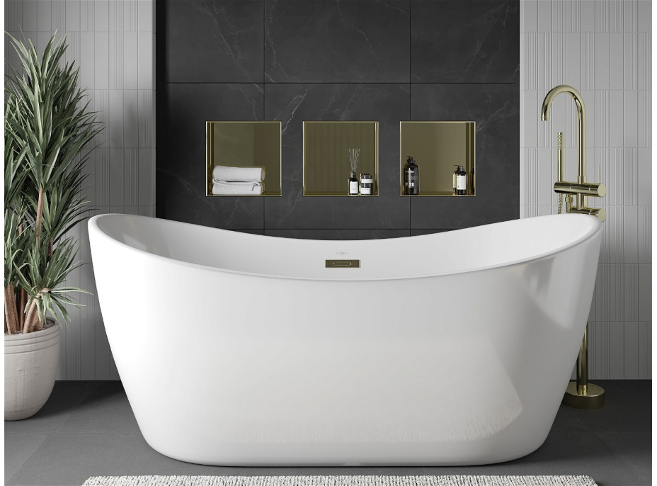 Podomietková polica vyrobená z nerezovej ocele so zlatou lesklou povrchovou úpravou ponúkne jednoduché riešenie na uskladnenie kozmetických potrieb, ktoré zaberie minimum miesta v priestore. Policu totiž ľahko zabudujete priamo do steny a vďaka podomietkovému golieru ju obložíte kachličkami alebo omietkou. Vďaka použitým materiálom teda veľmi dobre odoláva vlhkosti.