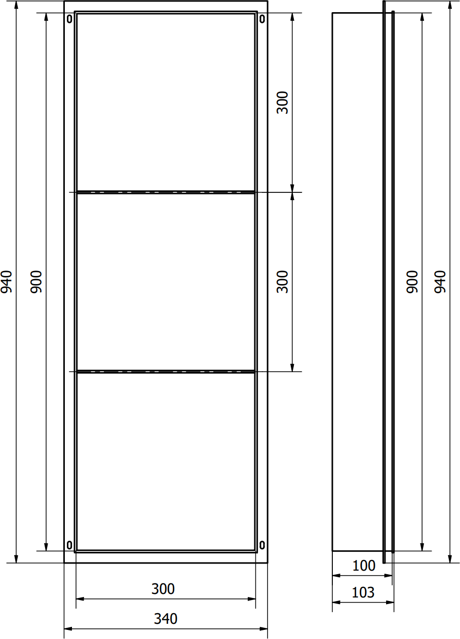 Zápustná polica pod omietku X-Wall-NR 30x90 cm - biela