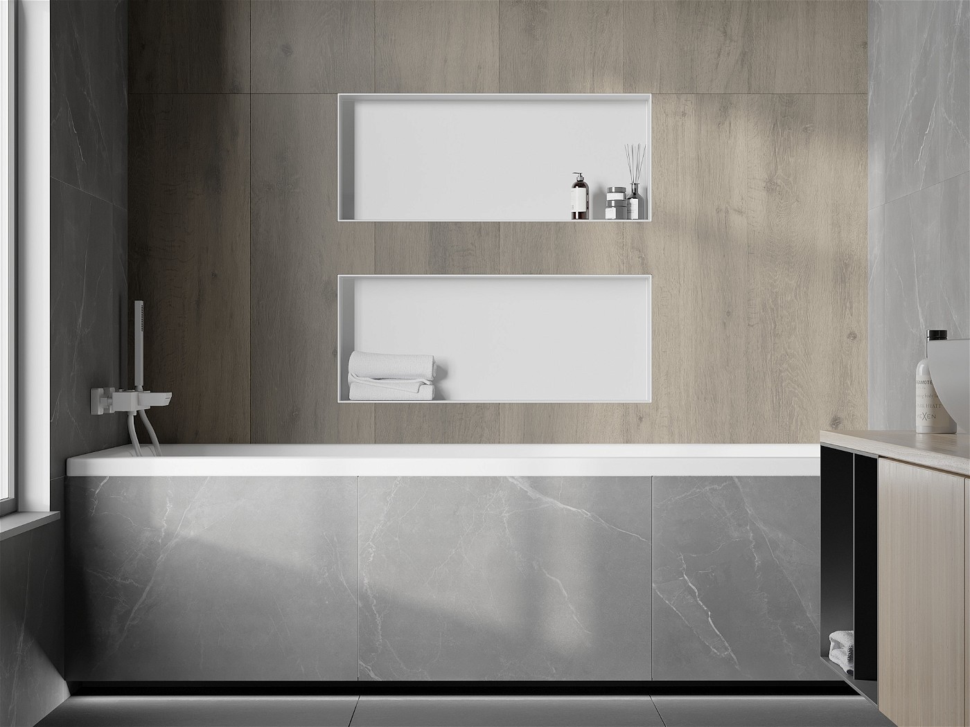 Podomietková polica vyrobená z nerezovej ocele s bielou povrchovou úpravou ponúkne jednoduché riešenie na uskladnenie kozmetických potrieb, ktoré zaberie minimum miesta v priestore. Policu totiž ľahko zabudujete priamo do steny a vďaka podomietkovému golieru ju obložíte kachličkami alebo omietkou. Vďaka použitým materiálom teda veľmi dobre odoláva vlhkosti.