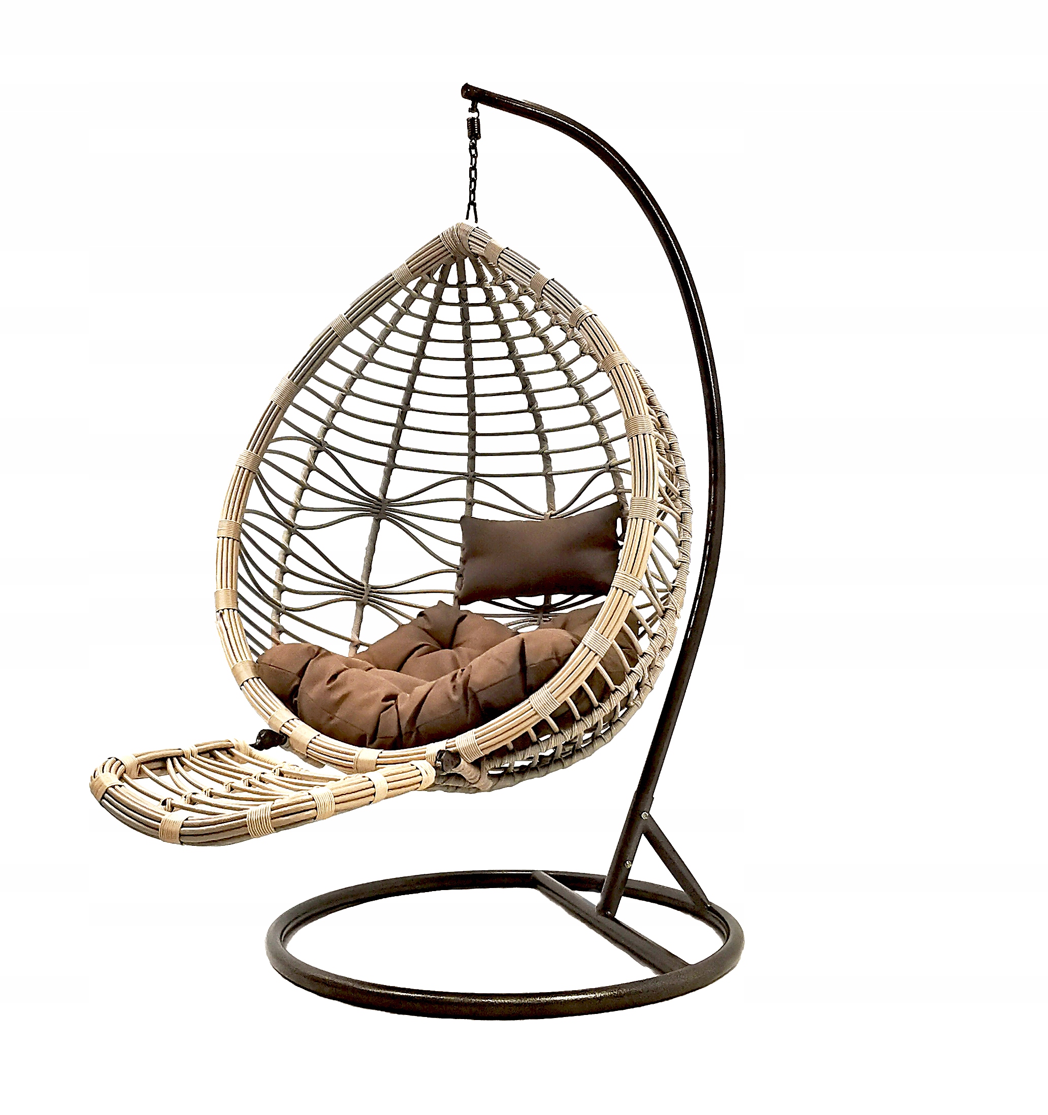Závesné hojdacie kreslo RIO s podnožkou - krémové / hnedé - vel. XL