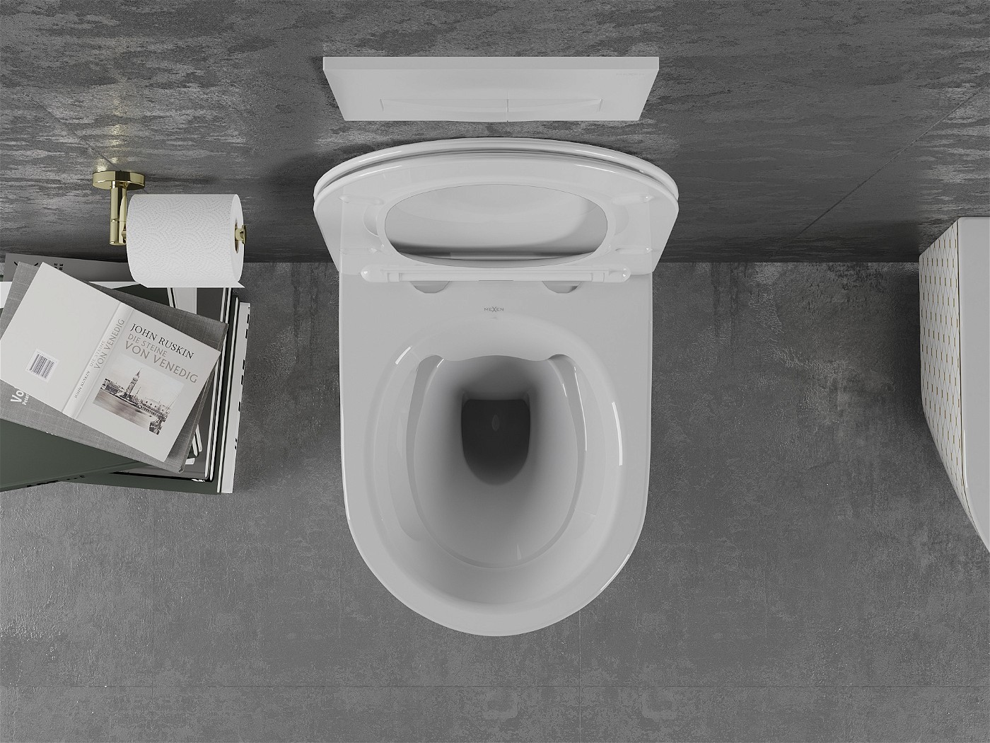 Závesné WC MEXEN LENA RIMLESS - biele/zlaté vzorované + Duroplast sedátko slim, 30224009
