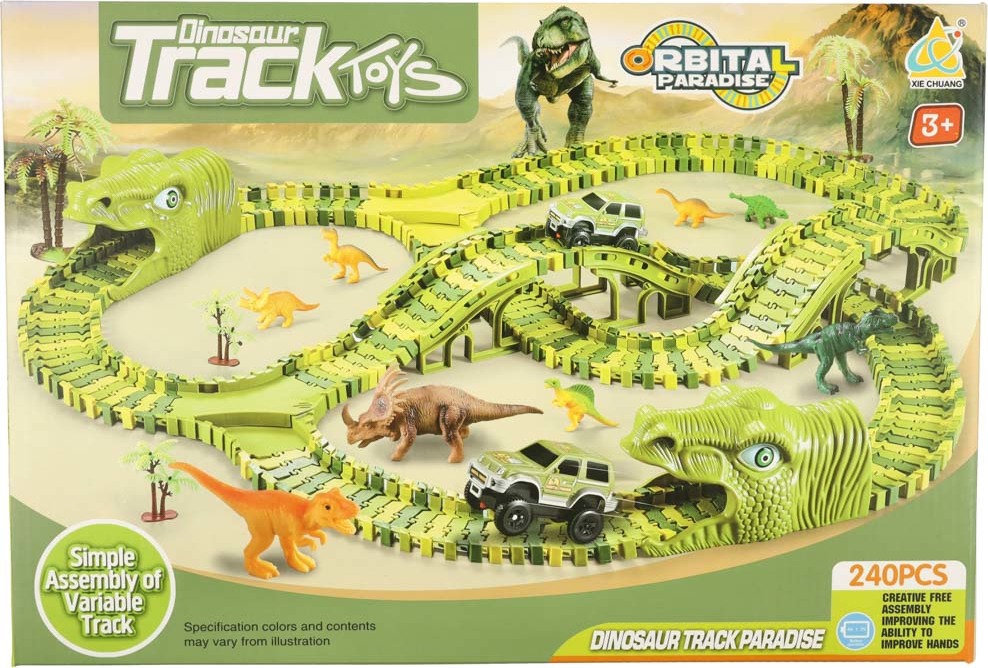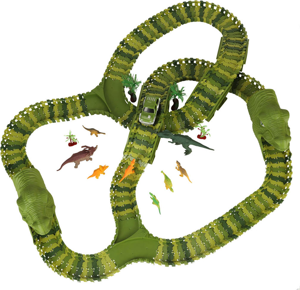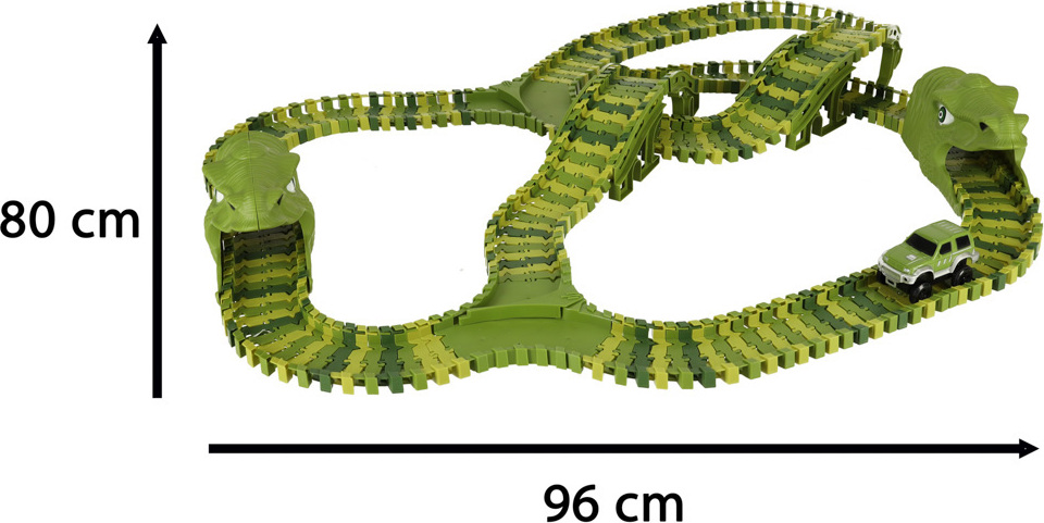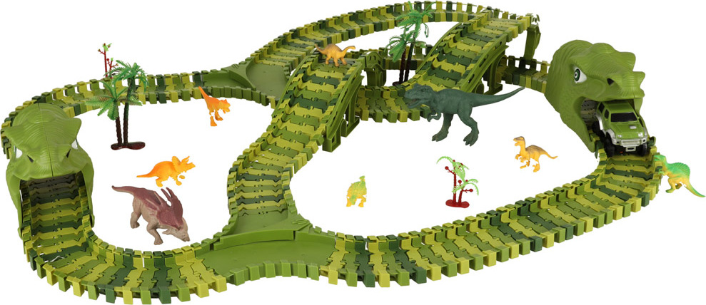Velká závodní dráha, která malé návštěvníky přenese do kouzelné země plné zajímavých dinosaurů. Dráhu lze postavit různými způsoby - jediným omezením je vaše fantazie