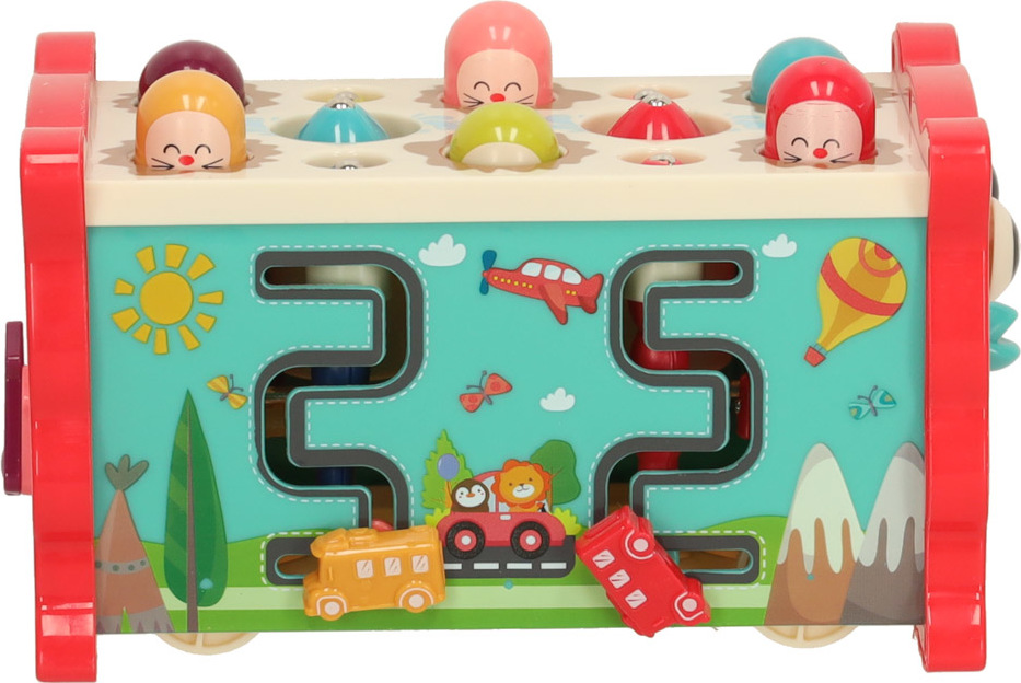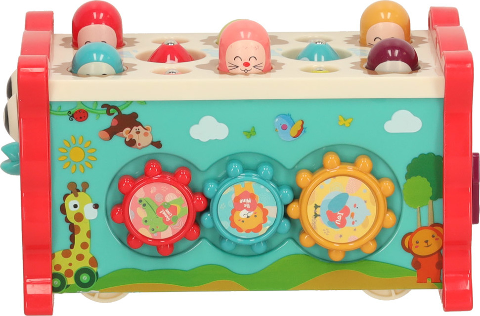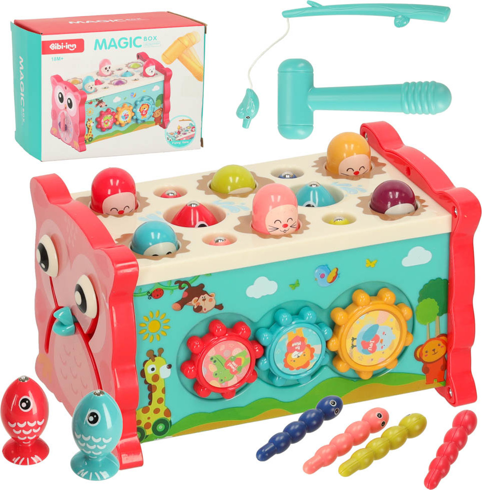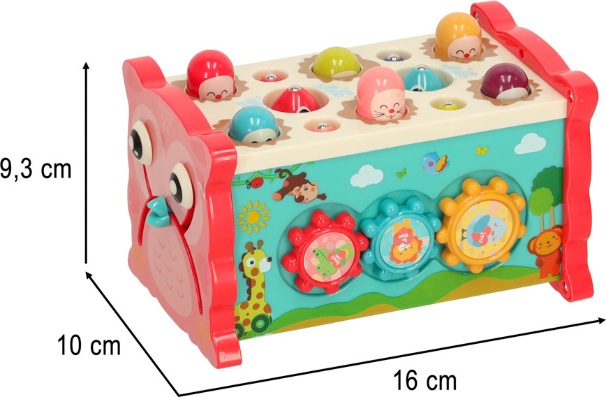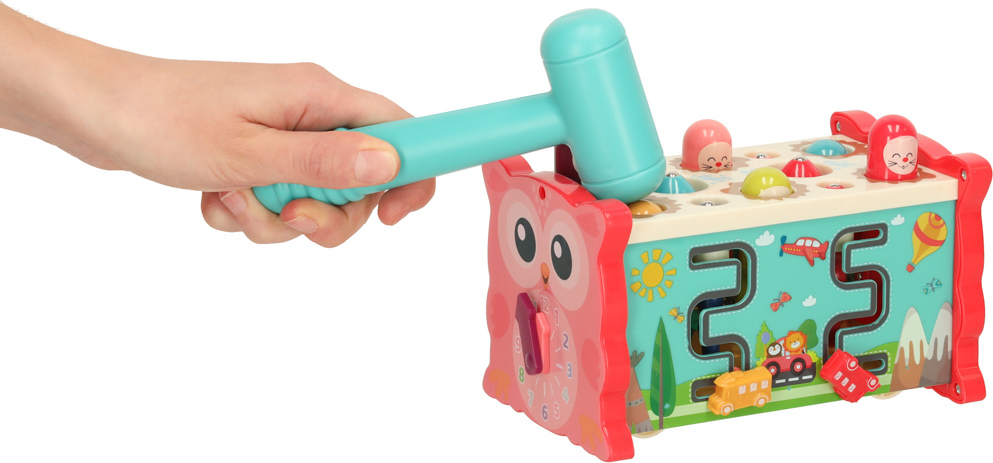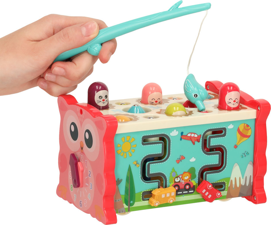 Táto interaktívna hračka vám poskytne hodiny zábavy! Jednou z hlavných atrakcií je možnosť zatĺkať malé potvorky, ktoré sa objavujú, čo prináša radosť vášmu dieťatku a precvičuje jeho reflexy. Hračka navyše umožňuje chytať farebné rybičky a červy pomocou priloženého rybárskeho prútu, čo rozvíja presnosť a trpezlivosť. Dieťa sa tiež môže naučiť základy fungovania hodín, otáčať farebnými kolieskami a pohybovať autíčkami v bludisku. Vďaka rôznym aktivitám poskytuje sada hodiny zábavy a zároveň stimuluje zmysly dieťaťa prostredníctvom intenzívnych farieb a rozmanitých tvarov.
