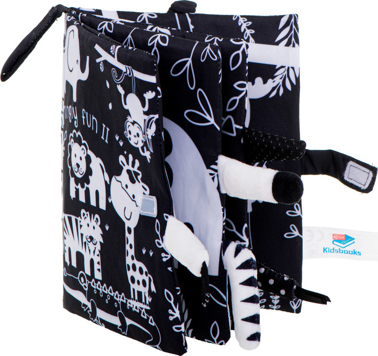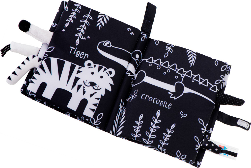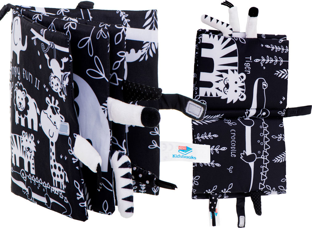Prvá knižka pre vaše dieťa! Vydajte sa so svojím dieťatkom na kúzelnú cestu svetom divokých zvierat. Kúzelná látková knižka s kontrastnými vzormi je skvelá pre deti, ktoré sa práve učia o svete. Čiernobiele zvieratá vám skvele predstavia svet afrických zvierat.