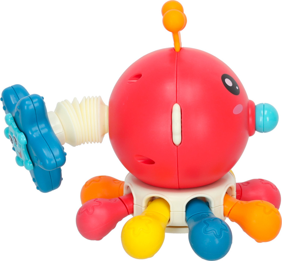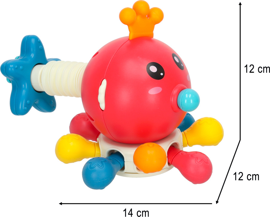 Poskytnite svojmu dieťaťu kreatívnu hru! Farebná chobotnica je viac ako hračka, je to dokonalý nástroj pre všestranný rozvoj vášho dieťaťa! Vďaka rôznym textúram, žiarivým farbám a množstvu prvkov na skúmanie stimuluje zmysly vášho dieťaťa a podporuje rozvoj jeho jemnej motoriky. Stláčanie, krútenie, hryzenie - každá činnosť je novým dobrodružstvom a príležitosťou na učenie! Sledujte, ako vaše dieťa spoznáva svet pri hre so zmyslovou chobotnicou. Hračka je vyrobená z pevného plastu a pružného materiálu bezpečného pre deti. Môžete si tak byť istí, že vám hračka poskytne hodiny bezpečnej zábavy!