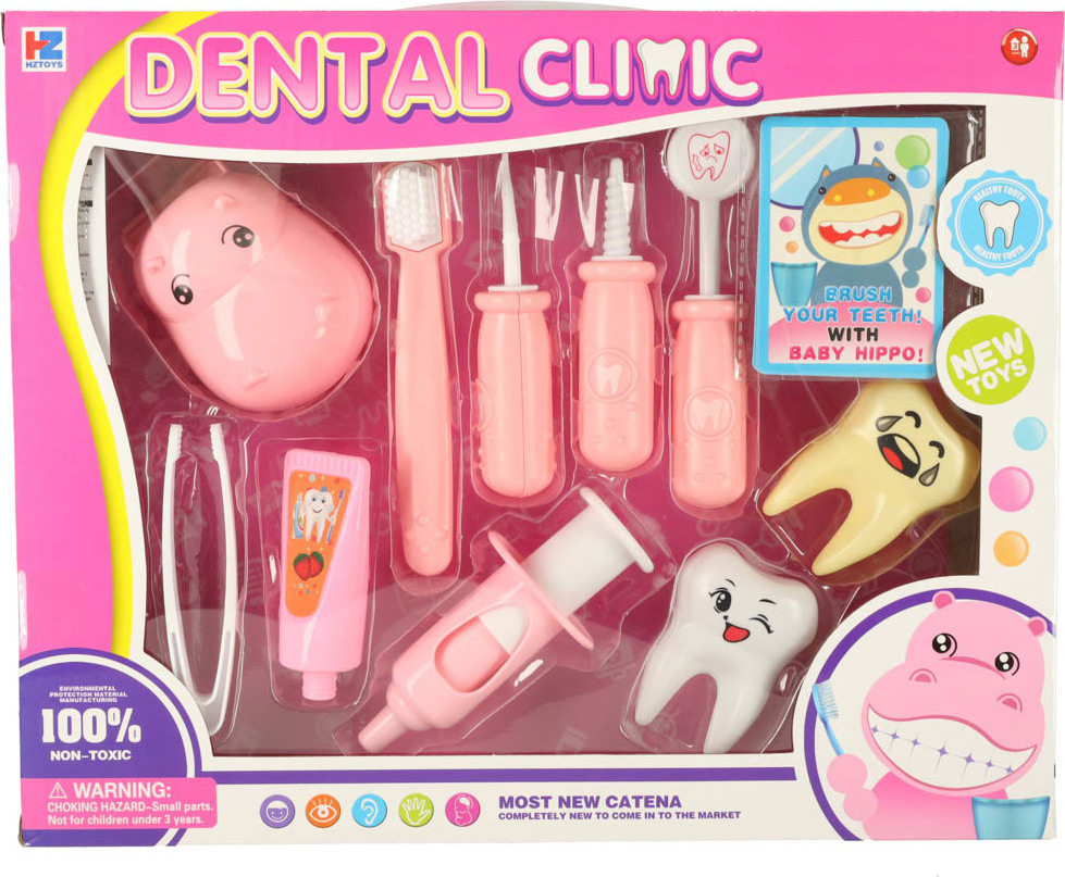 Malého hrocha bolí zub. Bude nutná pomoc malého zubára. Sada vám umožní cítiť sa na 100% v úlohe skutočného zubára a starať sa o zdravý úsmev vašich medvedíkov a bábik. Fantastická hračka, ktorá pomôže dieťaťu zvyknúť si na návštevu zubára. Návšteva u zubára už nebude taká desivá.