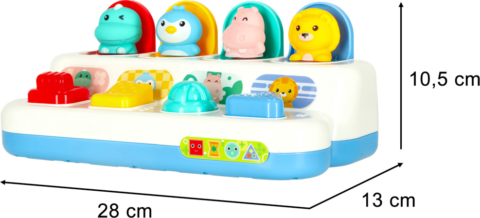 Interaktívna hračka "Vyskakovacie zvieratká" je ideálna pre vaše dieťa! Hračka má štyri interaktívne tlačidlá, ktoré musia batoľa stlačiť, otočiť alebo nimi pohybovať, aby sa mu pred očami objavili farebné zvieratká . Pri hre si batoľa rozvíja drobnú motoriku a tiež precvičuje logické myslenie, vrátane uvažovania o príčinách a následkoch . Aj napriek svojej jednoduchosti bude hračka ideálnym darčekom pre každé dieťa - zabaví ich na dlhé hodiny a poskytne mu jedinečnú zábavu.