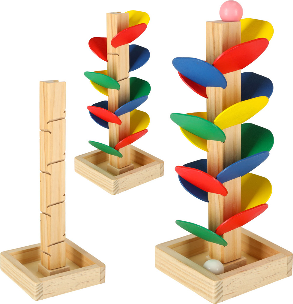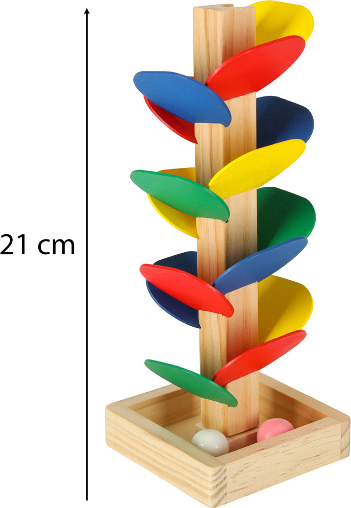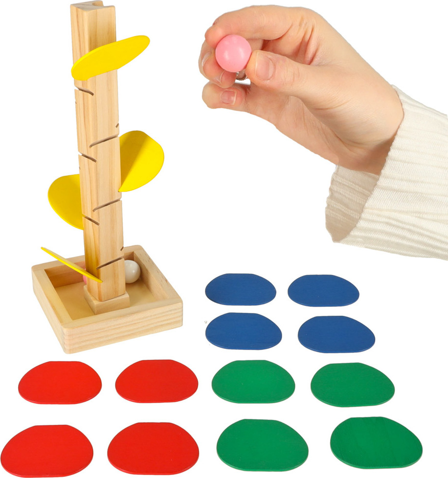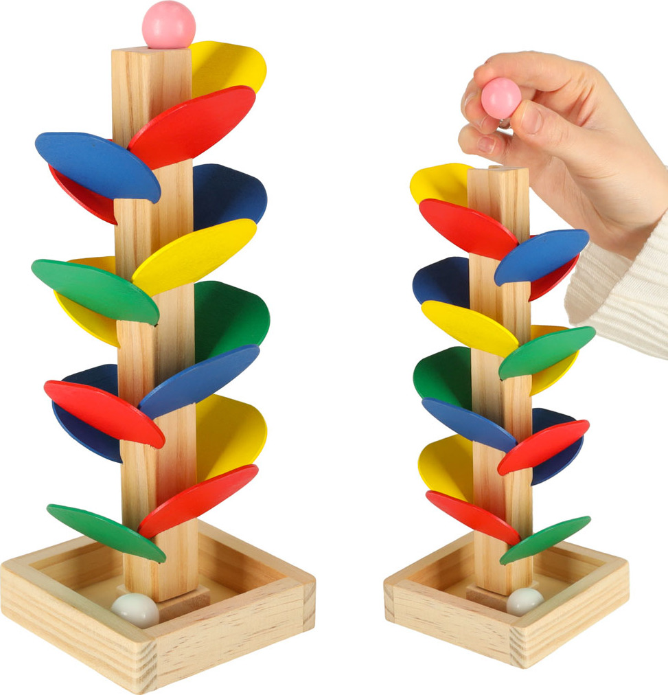 Zvukový strom je jednoduchá, ale pútavá hračka, ktorá batoľatám prináša radosť a podporuje ich rozvoj. Hra spočíva vo púšťaní guličky zhora, ktorá sa kotúľa dole, odráža sa od farebných listov a zároveň vydáva jemné zvuky.