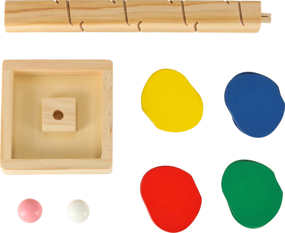 Robustná drevená konštrukcia s farebnými akcentmi nielen zaisťuje odolnosť, ale slúži aj ako esteticky príjemný dekoratívny prvok v detskej izbe. Strom rozvíja jemnú motoriku, koordináciu rúk a očí a logické myslenie.